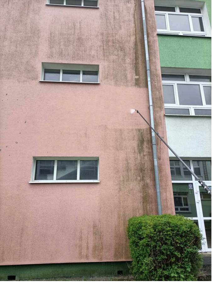 - Długi lanser - umożliwia czyszczenie dużych powierzchni bez rusztowań. SoftWash skutecznie usuwa zabrudzenia biologiczne z fasad, idealny do starych lub mocno zanieczyszczonych ścian.